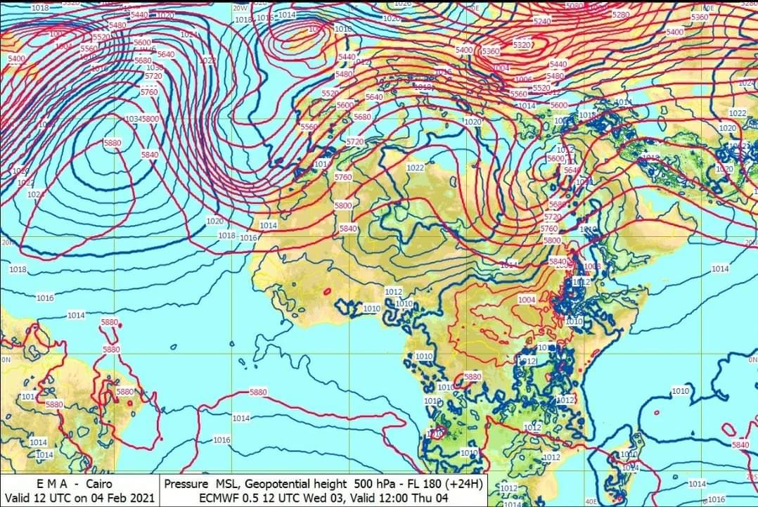 ليسود طقس اليوم الخميس 4-2-2021، مائل للبرودة نهاًا وشديد البرودة ليلًا، وستكون الأمطار غزيرة يصاحبها البرق والرعد تصل الي حد السيول علي سيناء.