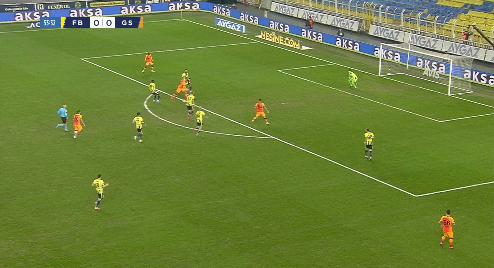 مهاجم جالاتا سراي الجديد جاءته الكورة في الدقيقة الثالثة والخمسين خارج منطقة الجزاء من الناحية اليسرى للحارس مرمى الفريق المنافس وعلى مسافة بعيدة من المرمى، ليقوم المهاجم الشاب المصري بمراوغة بمدافعين ويسدد الكورة أرضية على الجهة اليمنى لحارس فنربخشه.