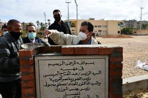 وزير الرياضة يضع حجر أساس الملاعب الفرعية بإستاد العريش