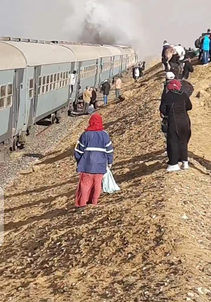 شهد قطار ٥٩٤ السويس/القاهرة بين محطتي جنيفة وأبو حلب علي خط السويس/الاسماعيلية تصاعد الأدخنة من عربة البور الموجودة بالقطار دون حدوث إصابات أو وفيات.