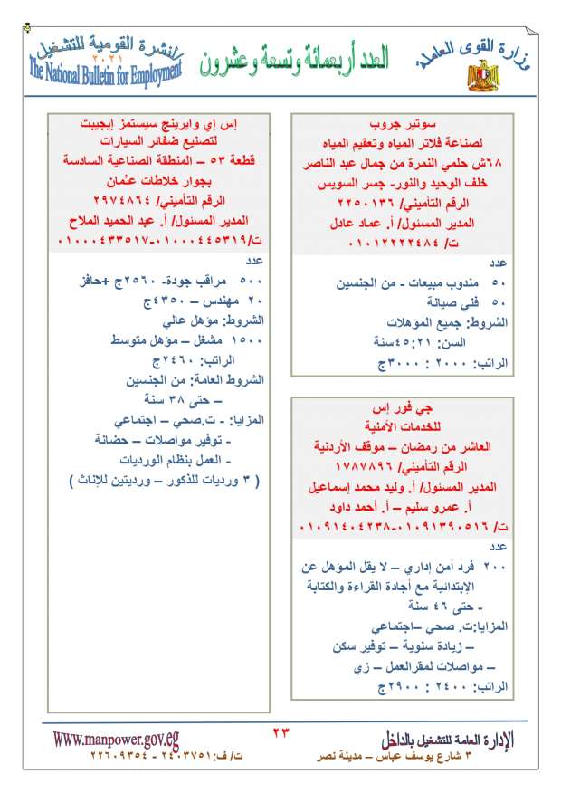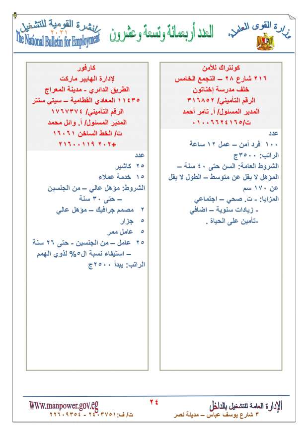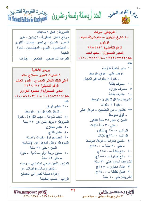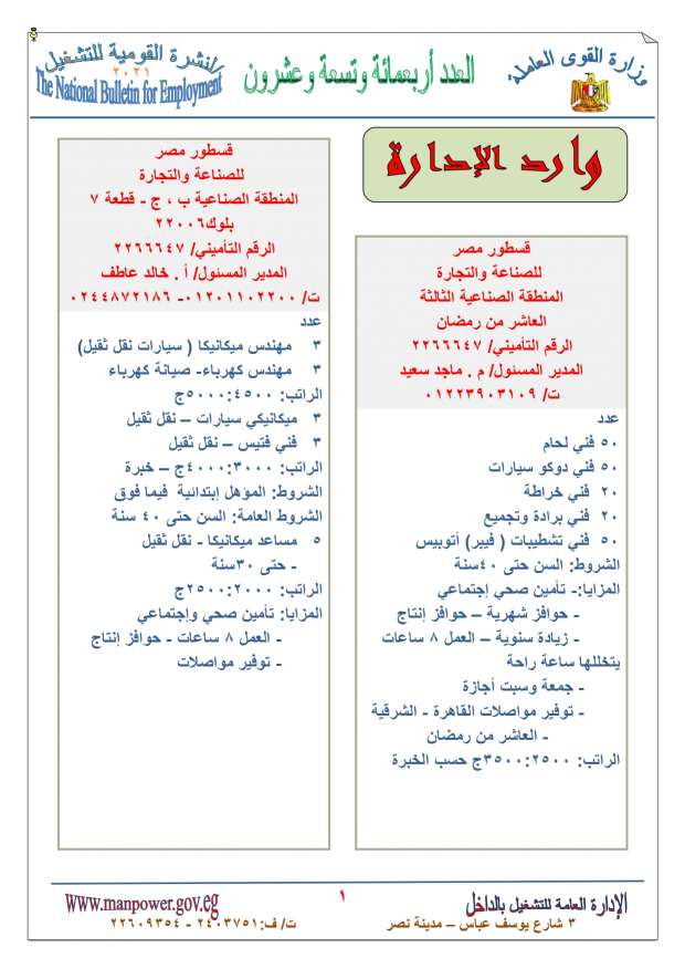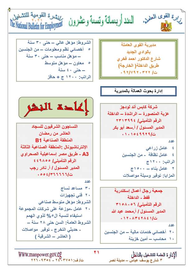 موقع “برق بريس” ينشر وظائف القوى العاملة كما نشرت في النشرة القومية للتشغيل على النحو التالي: