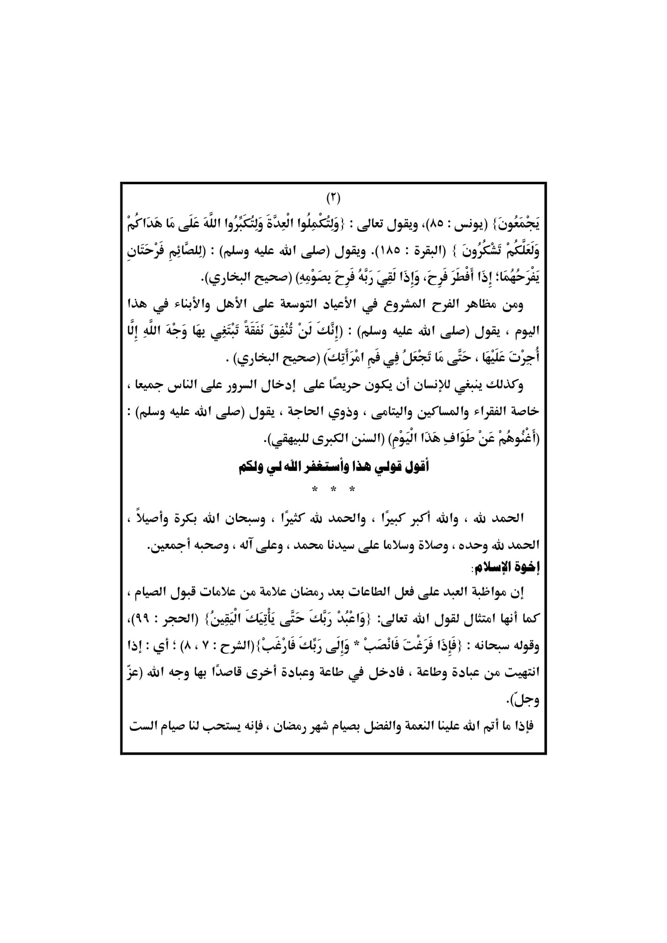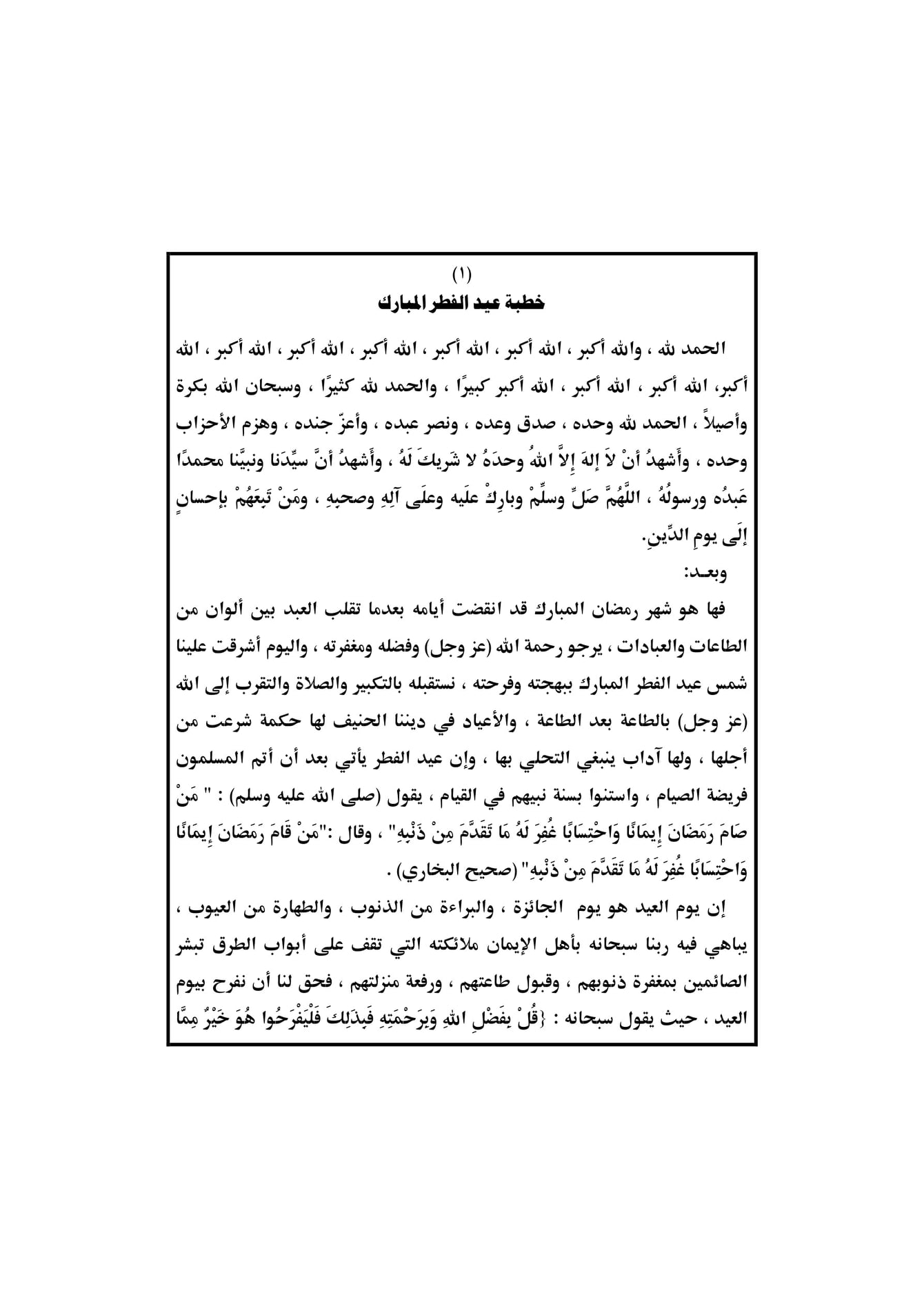 ويستعرض موقع برق بريس موضوع خطبة صلاة عيد الفطر 2021 وهي كالآتي: