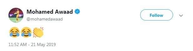 وعقب استبعاد الحارس محمد عواد من القائمة علّق عبر حسابه الشخصي على تويتر حيث نشر تغريدة تضمنت تعبيرات بالضحك كنوع من السخرية والتهكم على اختيارات الجهاز الفني لمنتخب مصر.