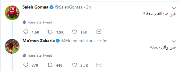 قبل أن يرد مؤمن زكريا زميله ساخراً عبر تويتر ” فين وائل جمعة”.