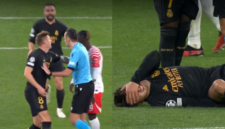 وانفجر لاعبي ريال مدريد بقيادة توني كروس في وجه الحكم، لأن لاعبي لايبزيج لم يلتزموا بالروح الرياضية ولم يوقفوا اللعب.