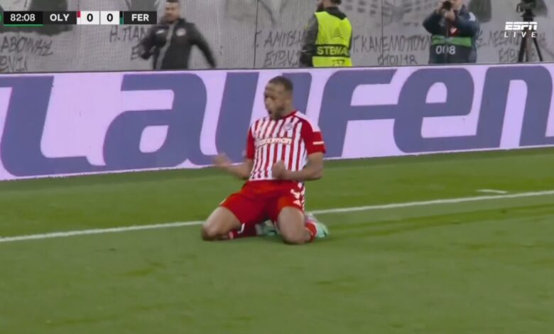 ايوب الكعبي يسجل هدف تاريخي لأولمبياكوس في وقت قاااااتل في الدوري الأوروبي