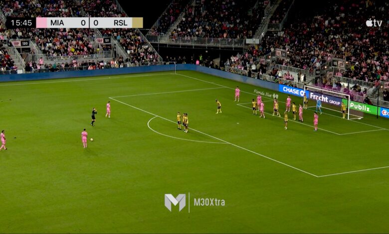 ميسي ينفذ ركلة حرة بطريقة عبقرية رغم وجود 20 لاعب في منطقة الجزاء!