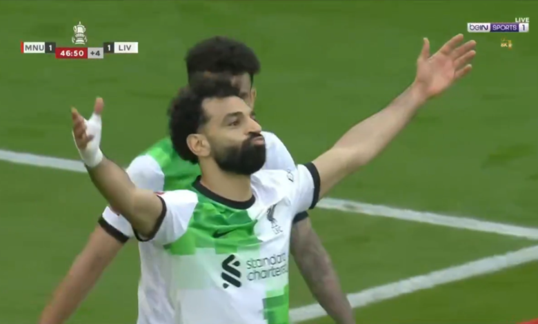 تقدم مانشستر يونايتد بهدف من سكوت ماكتوميناي،وعادل أليكسيس ماك أليستر النتيجة للريدز، وفي الدقيقة الثانية من الوقت بدل الضائع للشوط الأول، استغل صلاح تسديدة داروين نونيز التي تصدى لها الحارس أونانا، ليسجل هدفه الأول في البطولة هذا الموسم، والهدف رقم 21 له مع ليفربول في جميع المسابقات.