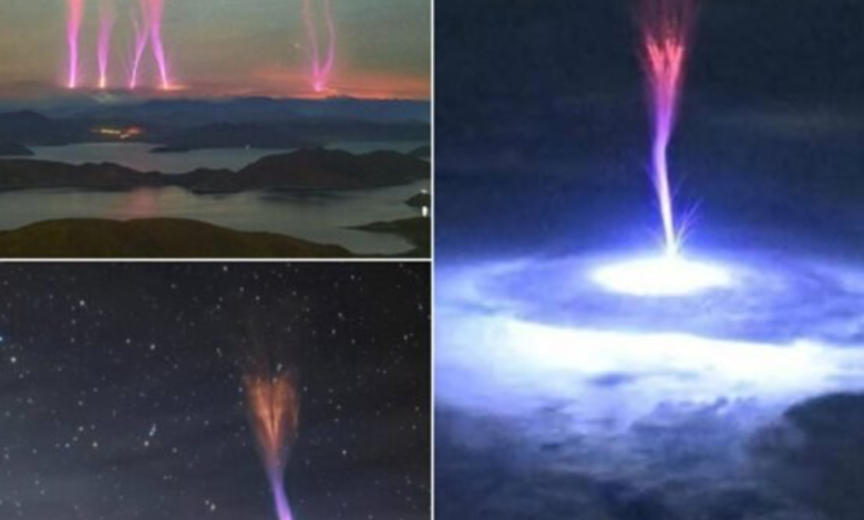 الصور أظهرت شعاعًا أحمر مستقيمًا يخترق السماء من قلب عاصفة رعدية نحو الفضاء، في ومضة خاطفة قلّما تُرى. أما من سطح الأرض، فقد بدا المشهد على شكل وميض كهربائي صاعد محاط بتوهج أزرق لامع، يظهر عادة في الليالي المظلمة المصحوبة بعواصف قوية.