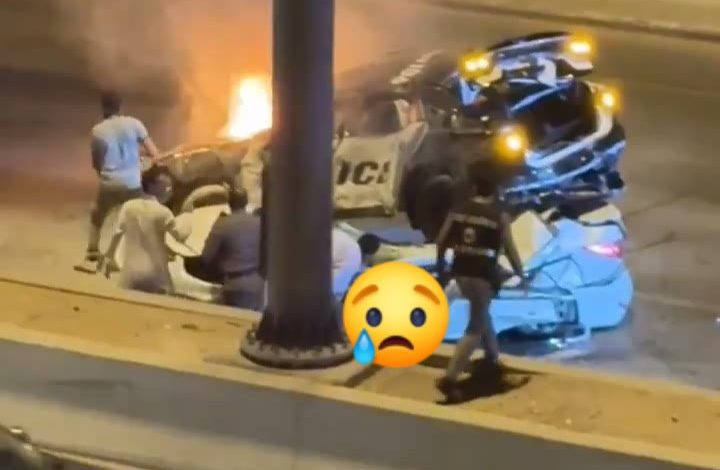 - سقوط الدورية: أثناء المطاردة السريعة على جسر علوي، قام قائد المركبة المطلوبة بـ”لفة قوية” أو مناورة حادة على الكوبري. أدت هذه المناورة إلى انحراف مركبة الشرطة عن مسارها، ما تسبب في سقوطها من أعلى الجسر إلى الطريق الأسفل.